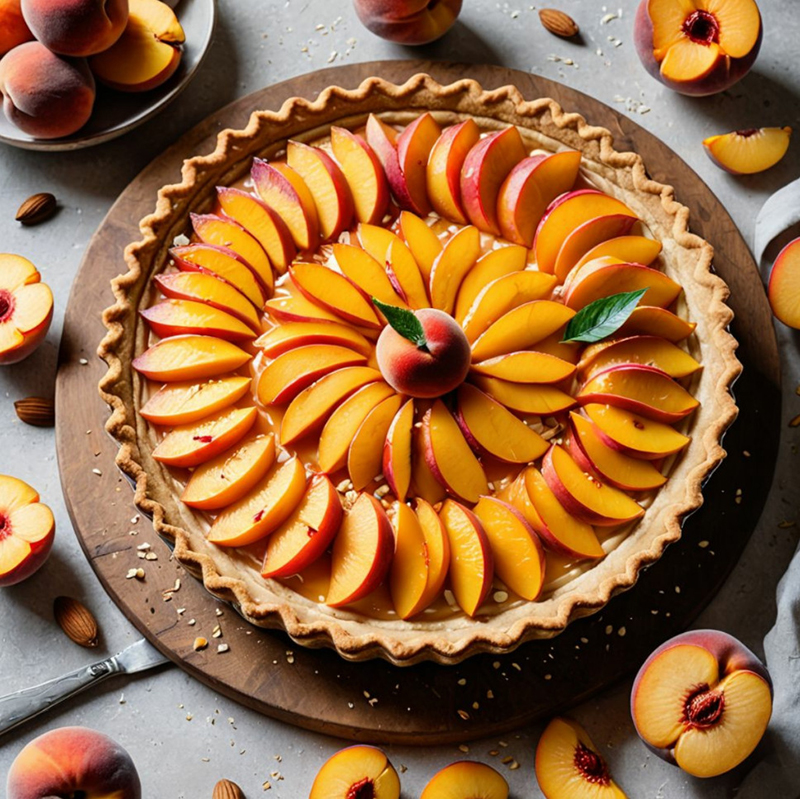 Savourez l’été, une pâte croustillante, garnie de pêches juteuses et d’une crème d’amande onctueuse, pour un dessert qui allie douceur et gourmandise à chaque bouchée. Parfait pour toutes les occasions !