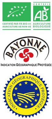 Le jambon de Bayonne Bonneterre bénéficie d’une double certification et respecte à ce titre, les cahiers des charges de ces 2 labels :
