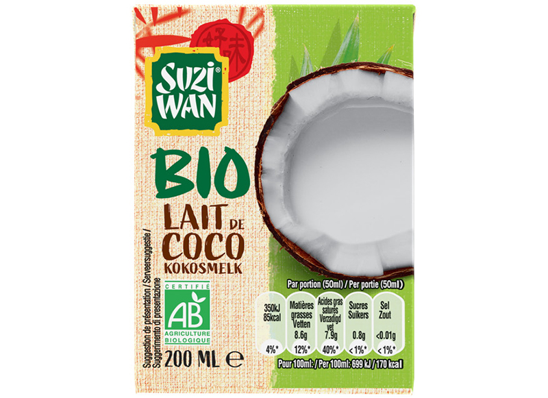 Le lait de coco BIO Suzi Wan® est idéal pour donner une touche d'Asie à vos recettes du quotidien, aussi bien salées que sucrées.