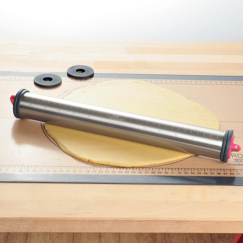 Réalisez à l'aide d'un seul rouleau de la pâte à pizza, à tarte, des feuilles de lasagne ou toute autre pâtisserie ! Chez Guy Demarle nous aimons les petits plus qui vous facilitent la vie, ce rouleau à pâtisserie dispose donc de graduations qui vous permettent de voir instantanément la taille que vous voulez donner à votre pâte pour un résultat parfait ! Contrairement au rouleau en bois, l'inox n’accroche pas et ne nécessite généralement pas d'être fariné (mais à vous de juger selon la texture de votre pâte).