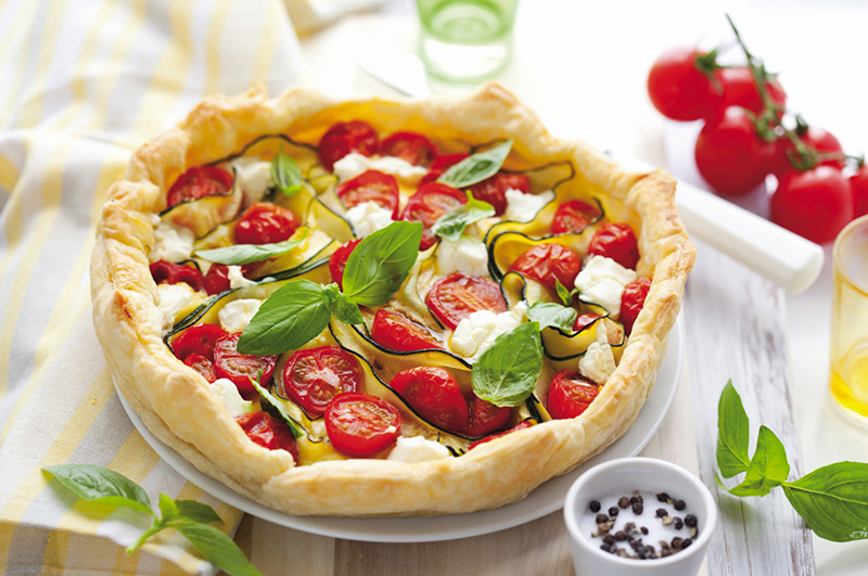La chaleur de l’Italie se diffuse doucement autour de la table avec cette tarte Santorini.