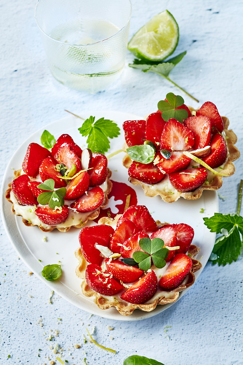 Tartelettes aux fraises charlotte, basilic et citron vert