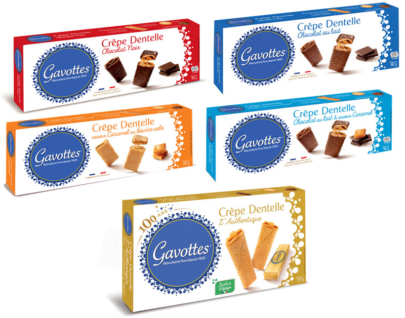 Aujourd’hui, les Crêpes Dentelle Gavottes® font craquer de plus en plus de gourmets séduits par la légèreté du biscuit, son croustillant, sa jolie couleur dorée et le bon goût de beurre qui le caractérise. Gavottes® s'est aussi imposée au rayon salé à travers des Crêpes Dentelle fourrées, aux recettes originales et audacieuses. La biscuiterie a également lancé des Pâtes à tartiner à la texture gourmande et croustillante grâce aux éclats de Crêpes Dentelle. Autant de créations qui font rayonner le savoir-faire unique de Gavottes® .