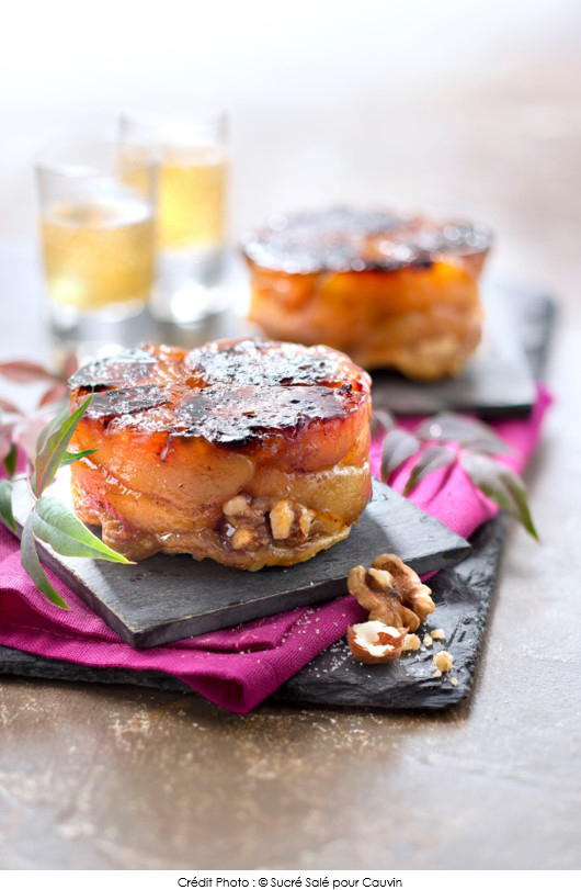 Tartelettes tatin aux reinettes du Vigan et huile vierge de macadamia CAUVIN, fruits secs caramélisés