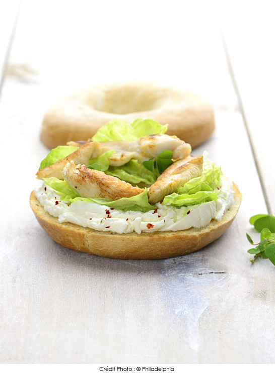 Dressez le poulet et la sucrine sur vos bagels pimentés.