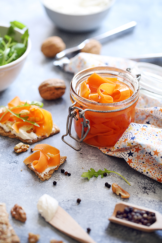 Tartines de pickles de carottes au vinaigre Cidre et Noix