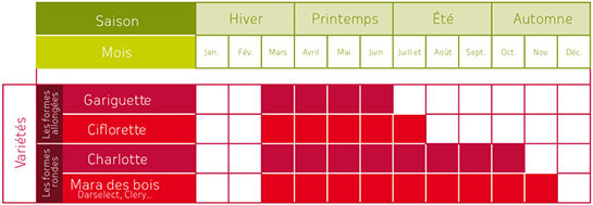 Avec les variétés de chez nous, vous ne serez jamais déçus niveau goût car les producteurs sélectionnent les variétés pour leurs qualités gustatives. Choisissez-les très fraîches, bien fermes, colorées et parfumées ; la peau bien lisse brillante et sans tâches, la couleur doit être uniforme, collerette et pédoncule verts et réguliers. Sélectionnez une variété de saison en vous référent au calendrier de production :