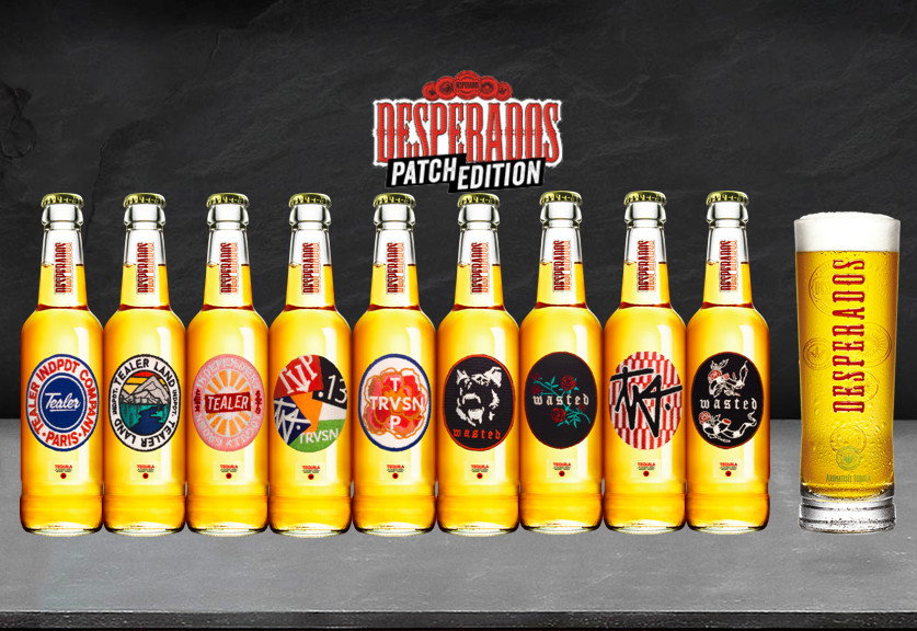 En 2018, pour la première fois, Desperados s’associe à 3 marques emblématiques de la street culture et créé Desperados Patch Edition : une édition limitée de 9 bouteilles inédites dont les étiquettes ont été totalement recustomisées sous forme de patchs à décoller de la bouteille et à repositionner sur les vêtements, ou tout simplement à collectionner !