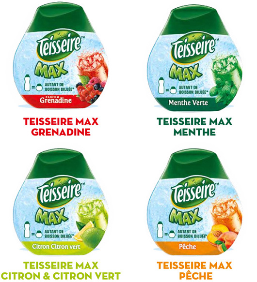 La famille Teisseire s’agrandit avec Teisseire Max : les 4 parfums préférés des Français, en petit flacon, pratique à prendre en main et à emporter pour profiter du bon goût de Teisseire en dehors de la maison.