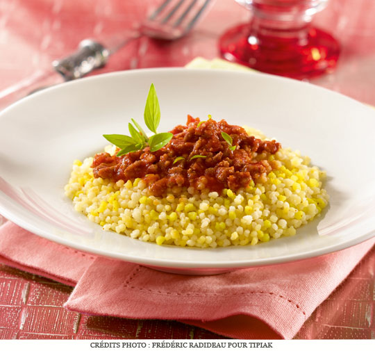 5• Servez les Tendres Perles, ajoutez la préparation et parsemez d’emmental râpé.
