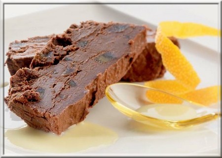 5.Chemiser la terrine chocolat orange de film étirable puis verser la préparation.