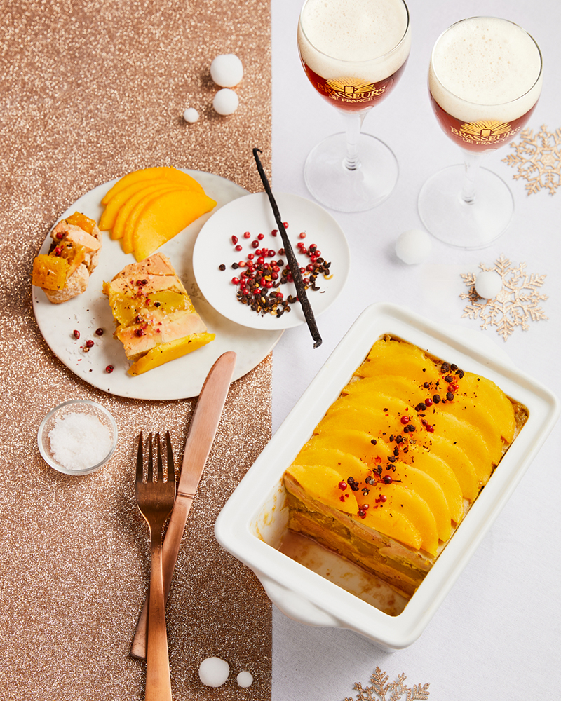 Terrine de foie gras aux mangues caramélisées, graines de vanille et poivre de Timut