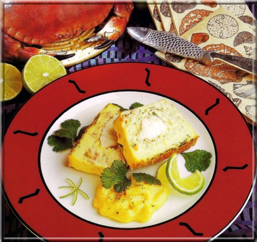 1.Dans une jatte, battre les œufs en omelette. Ajouter la crème, puis le crabe émietté, les fines herbes hachées, les échalotes, le zeste de citron finement râpé, du sel, du poivre la muscade et une pointe de piment de Cayenne. Bien mélanger.