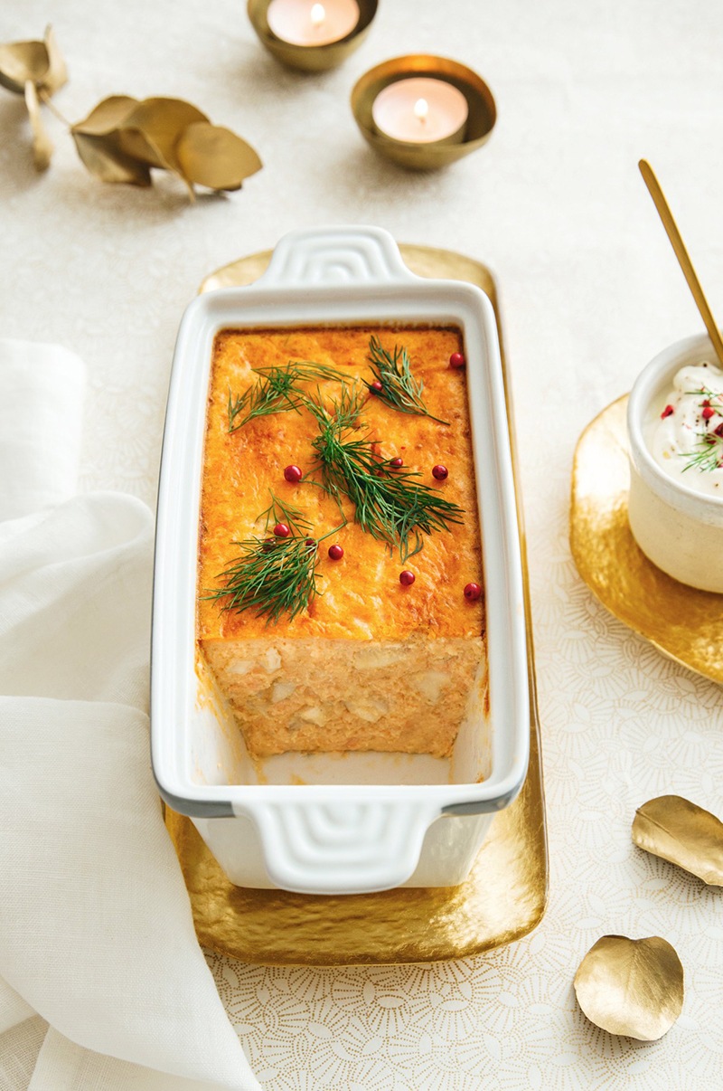 Délicatement fondante et pleine de fraîcheur, cette entrée festive marie le saumon et les noix de Saint-Jacques de la baie de Saint-Brieuc dans une harmonie parfaite de saveurs marines. Subtilement assaisonnée, elle offre un équilibre raffiné qui ravira les papilles dès les premières bouchées. Une composition élégante pour démarrer vos repas de fin d’année en toute légèreté.