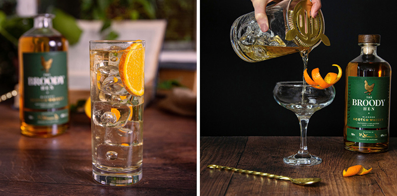 Préparer un cocktail avec The Broody Hen Blended Scotch Whisky dans un highball sur de la glace. Compléter avec du Ginger Beer et garnir d’une rondelle d'orange.