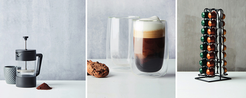 Côté café, la French Press, disponible en 350 ou 600 ml, infuse harmonieusement les arômes du café. Avec son style authentique, elle est l’outil idéal pour découvrir les richesses et diversités que propose le monde du café. Pour les adeptes du café en dosettes, le porte-capsules à la finition noire mate est un rangement élégant qui s’adapte à tous les intérieurs. Pour les amateurs de mocca ou café latte, si on opte pour un grand verre, celui de Point-Virgule permet de bien retenir la chaleur tout en évitant de se brûler les doigts grâce à sa double paroi.