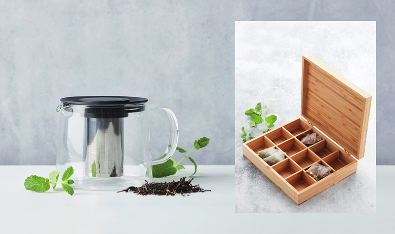 Le thé est un excellent stimulant qui permet de tenir jusqu’au déjeuner. La théière Point-Virgule est disponible en 600 ml ou 1 litre. Sa poignée est conçue pour rester froide lorsque la théière est bouillante. Le diffuseur intégré évite que les feuilles de thé en vrac ne tombent dans le précieux breuvage ! Pour compléter le service, la boîte en bambou labellisé FSC est très pratique afin de proposer ses différents thés.