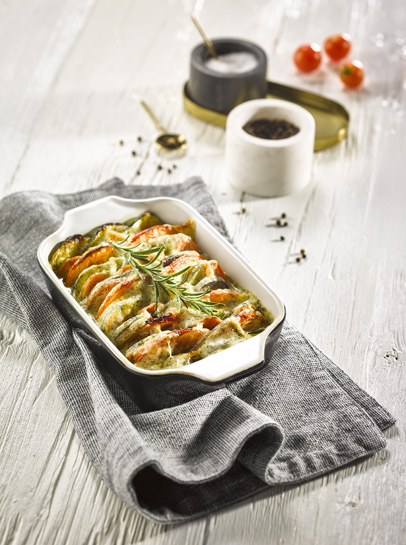 Tian de légumes, raclette à l’ail des ours Pochat & Fils