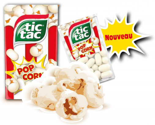 Grâce à son bon goût de PopCorn, Tic Tac vous donnera l’impression de déguster du PopCorn sucré croustillant.