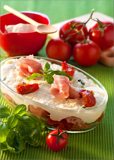 Tiramisù aux Tomates Confites et Jambon de Parme