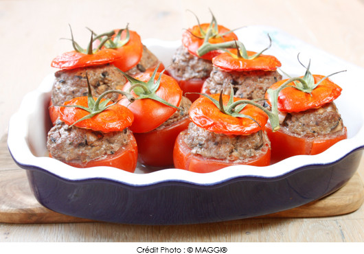Farcissez les tomates et faites cuire 25 minutes à 220°C (th.7-8).