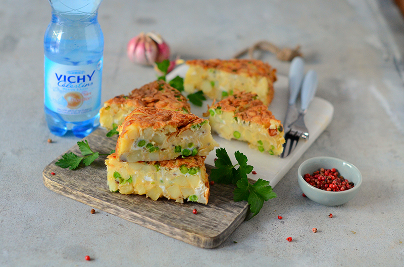 Tortilla de pommes de terre aux petits pois et aux herbes