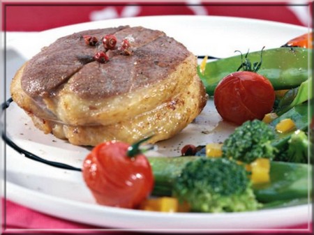 3.Faites cuire les tournedos deux à trois minutes de chaque côté selon la cuisson désirée. Mélangez régulièrement les légumes. Placez dans chaque assiette un tournedos, quelques légumes sautés et un cordon de vinaigre balsamique réduit.