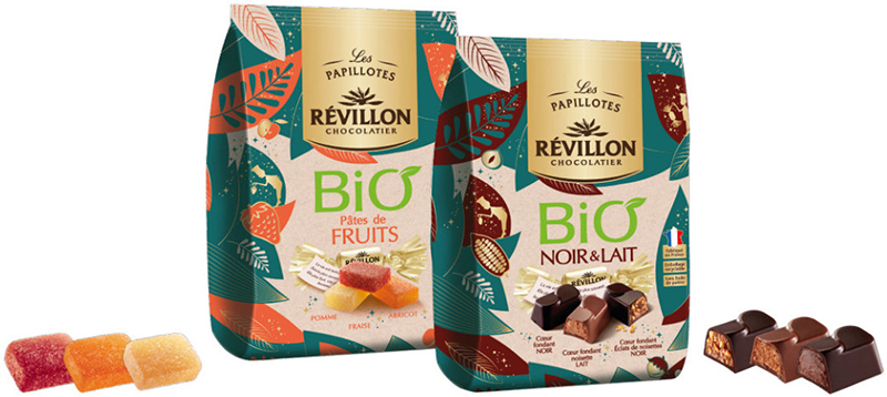 Pour perpétuer la magie des fêtes de fin d’année, quoi de mieux que de proposer une offre associant respect de l’environnement et gourmandise ? L’équipe de passionnés de Révillon Chocolatier a imaginé deux sachets bio à partager ou à offrir : de délicieux chocolats Noir et Lait et des pâtes de fruits 100% Bio. Nichées dans un joli sachet recyclable et délicatement enveloppées dans un emballage aux couleurs festives en papier recyclable, ces gourmandises renferment des messages pour en apprendre plus sur la Planète bleue et des citations à partager avec ceux qui nous entourent.