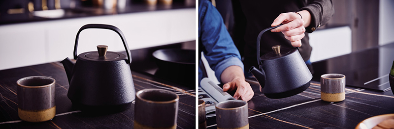 ✓ Le fond large permet d'utiliser la théière Saga sur tous feux y compris induction. L'eau peut donc être chauffée à feu doux ou moyen avant de rajouter le thé.