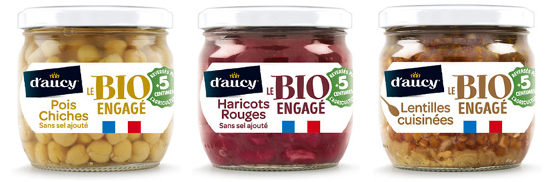À travers sa gamme « Le Bio Engagé », d’aucy rend le consommateur acteur d’une agriculture plus juste et respectueuse : 5 centimes par bocal sont en effet reversés aux agriculteurs, en plus de leur rémunération de base, pour les accompagner dans leur développement.