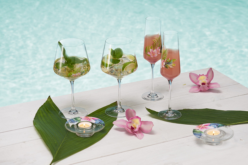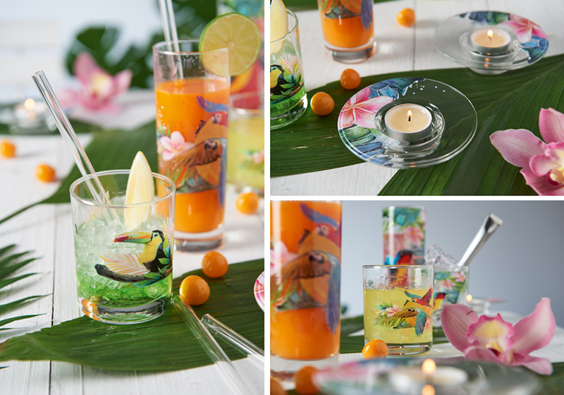 TROPICALE est une série de verres aux décors exotiques en édition limitée.
