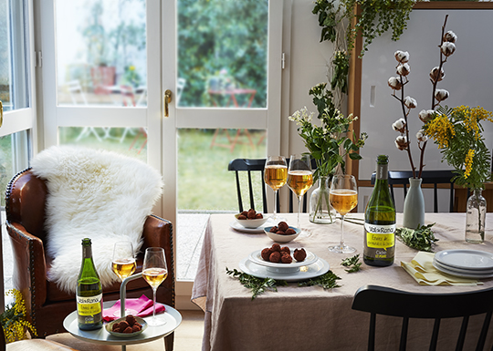 Le Maître de Chai a élaboré un assemblage afin de trouver la juste mesure entre le goût sucré et acide de la pomme et la délicatesse de la poire. Il conseille de le déguster entre 7-8 °C ! La boisson idéale pour les chocolats de Pâques.