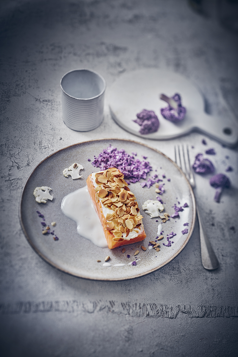 Truite aux amandes, St Môret® Léger et déclinaison de chou-fleur