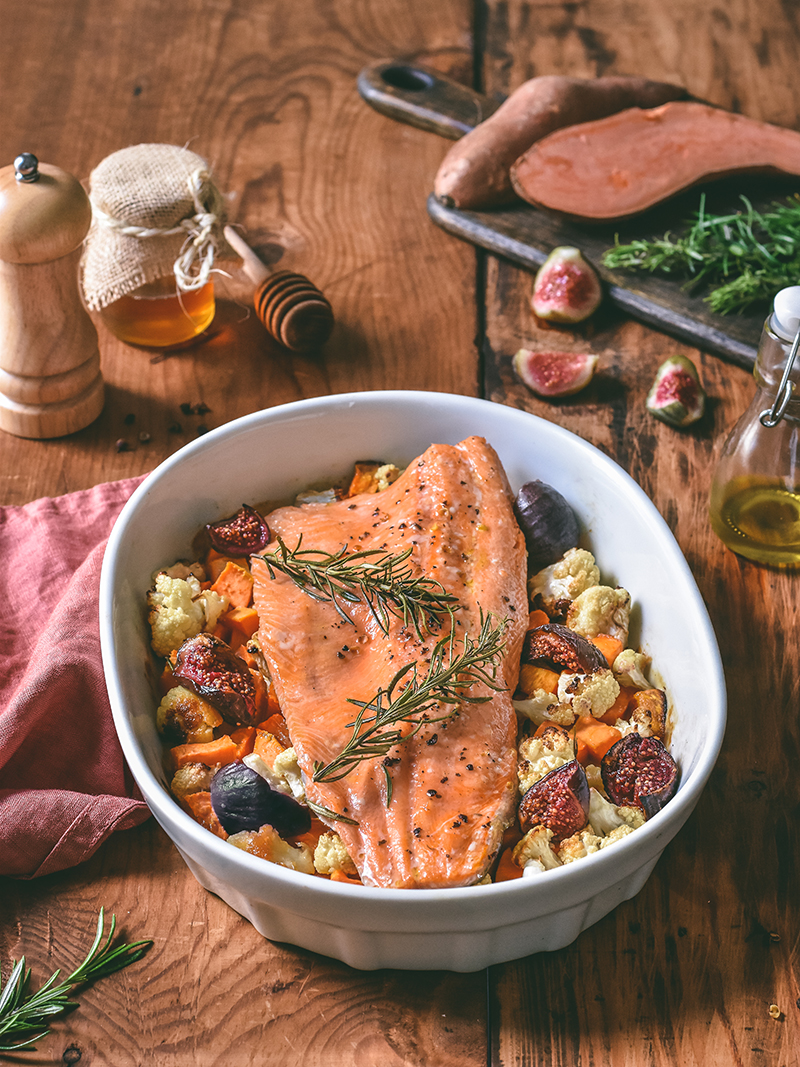 Truite rôtie au miel, aux figues, et au poivre de Timut