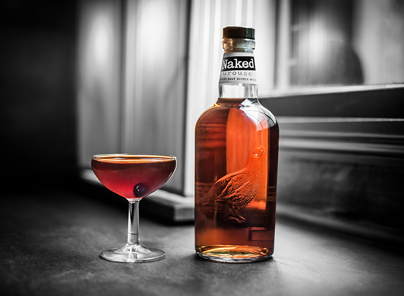 50ml Naked Grouse, 20ml Sweet vermouth, 20ml jus de cerise, Pointe de bitter, à l’orange, Garnish : cerise