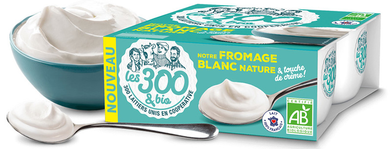 Marque de yaourts au lait de vache lancée en septembre 2018, Les 300&bio réunit 300 laitiers de l’Ouest de la France, unis en coopérative autour d’un projet de vie commun : construire ensemble le bio de demain. L’origine de ce projet vient d’une grande volonté de valoriser leur lait et transmettre leurs valeurs. Sans pour autant négliger plaisir et gourmandise !