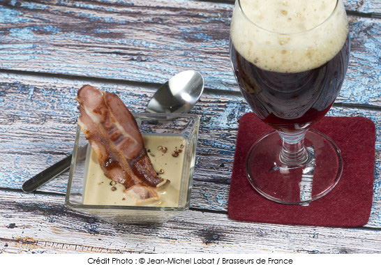 Une bière brune pour ses notes grillées sur le lard de cochon, créant un univers sensoriel très automnal.