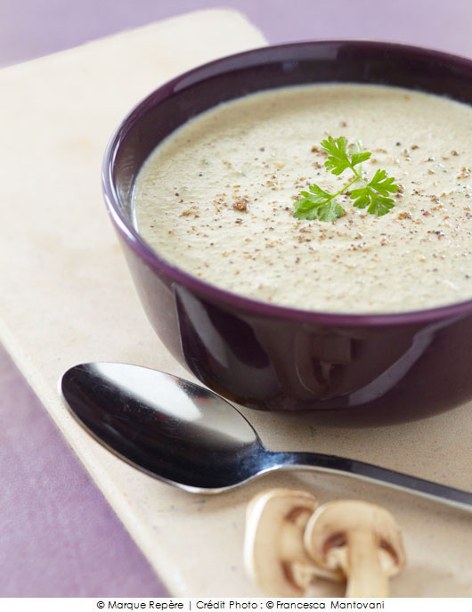 8• Juste avant de servir, émincer les 4 champignons restants et les déposer sur le velouté.