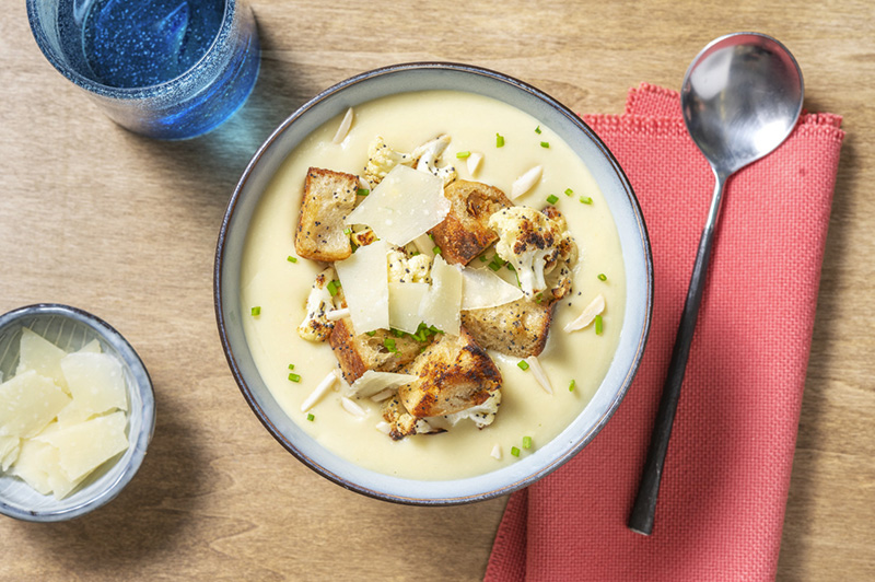 HelloFresh dévoile la recette de saison : le velouté de chou-fleur et son Parmesan AOP. Un nuage de plaisir, parfait pour les dîners légers en famille.