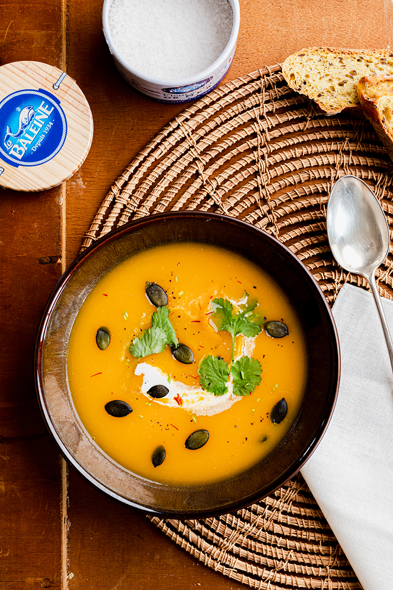 Envie de réconfort ? C’est le moment de se faire un bon velouté ! Puisque la situation sanitaire est de nouveau bien compliquée, autant en profiter pour cocooner à la maison ! La Baleine, la marque de sel préférée des Français, vous propose une recette réconfortante, douce et originale… pour profiter tranquillement de son « chez-soi » avec un ingrédient incontournable de la cuisine : la Fleur de Sel.