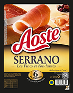 L’autre jambon cru de prédilection des français, après le JAMBON Cru Aoste ? Le Jambon Serrano, plébiscité pour ses saveurs authentiques et corsées ! Désormais disponible en pack de 6 tranches fines et fondantes, il se prête facilement aux dégustations improvisées, aux apéritifs dinatoires raffinés comme aux recettes les plus élaborées. Généreux, tendre et parfumé, le Jambon Serrano Aoste comblera toutes les envies.