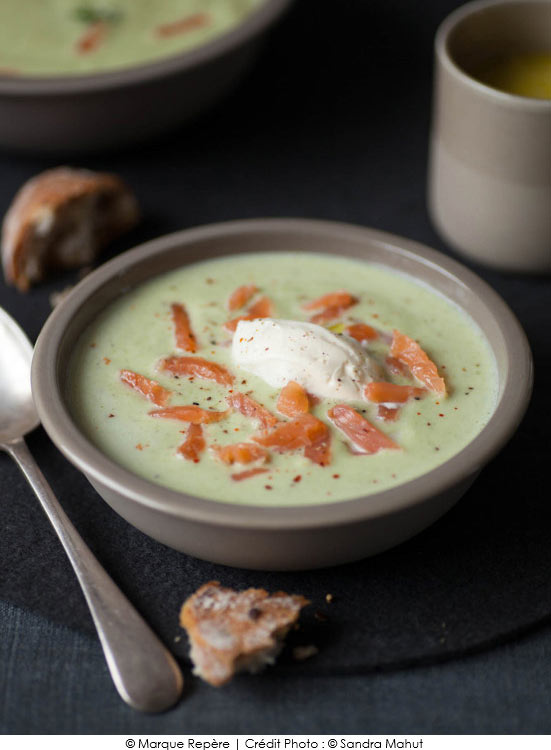 Velouté de pois cassés, lardons de saumon fumé par Chef Delage