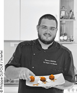 Un Toqué à la Maison », l’idée peut paraître un peu présomptueuse mais à y regarder de plus près, faire appel à un chef pour préparer et servir un repas à la maison ne coûte pas plus cher que d’aller au restaurant. C’est à partir de ce constat que Thierry Berton a créé ce service à Rennes en 2010. Trois ans plus tard, son bilan est sans appel : pour rien au monde il ne reviendrait en arrière pour réintégrer la brigade d’un restaurant. Épanoui par un planning qu’il gère seul, Thierry Berton prépare des déjeuners ou des dîners de 2 à 30 personnes, jamais davantage pour ne pas faire d’ombre aux traiteurs. Particulièrement libre dans ses choix, il se réjouit de pouvoir faire plaisir en se faisant plaisir.