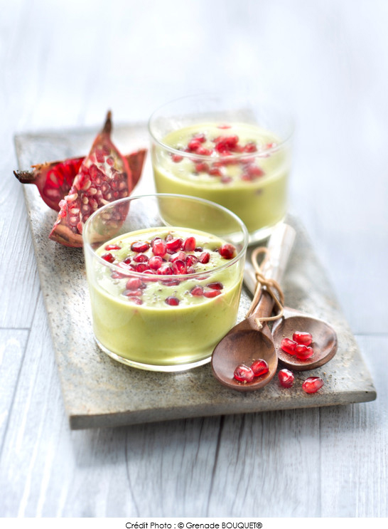 Velouté froid de grenade et chou kale avocat et citron