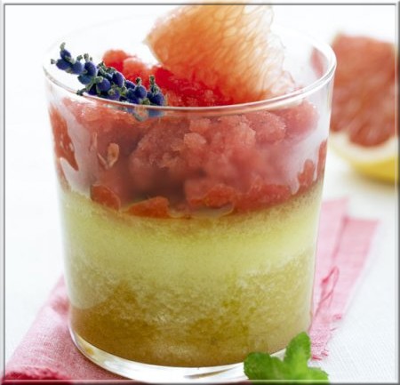 Verrine d’Amande et Pamplemousse de Floride – Granité Fraise