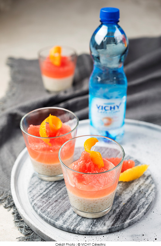 Le plus de la recette : Gorgée d’eau minérale naturelle gazeuse VICHY Célestins, et renforcée par les deux agrumes riches en vitamine C, c’est la recette idéale pour se remettre des excès festifs.