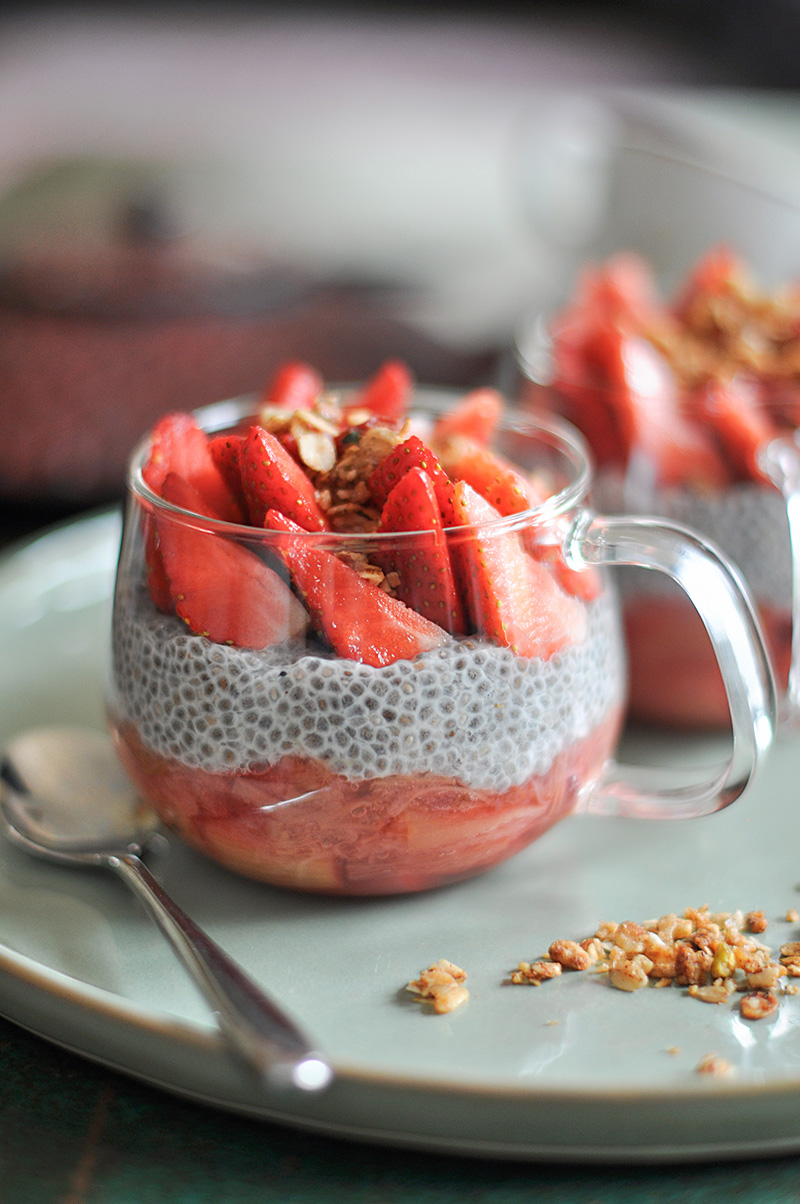 Verrine de fraises et rhubarbe aux graines de chia
