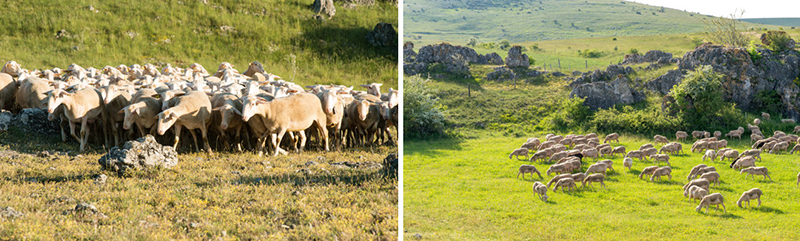 Les bergers partenaires de Lou Pérac mènent leurs troupeaux pâturer au grand air du printemps à l’automne sur les Grands Causses, une région de pleine nature située au nord de l’Occitanie.