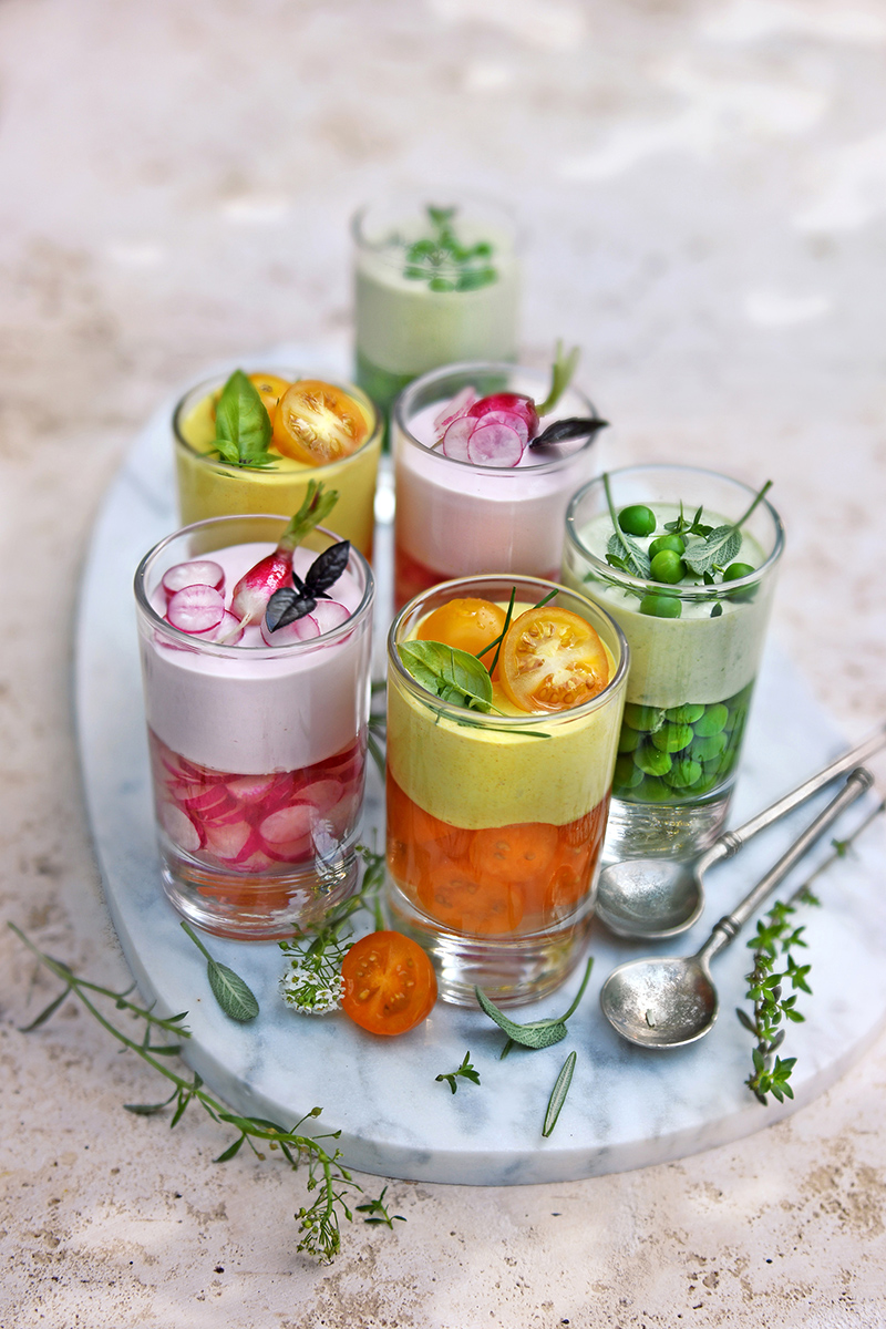 Verrines de petits légumes et fromage frais