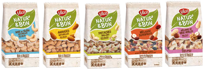 Des chips aux snacks en passant par les noix, toutes les recettes Vico ont comme point de départ la nature. Une origine du produit d’ailleurs fièrement illustrée par la marque dans sa communication, avec une signature forte : « Vico, la nature a bon goût ».